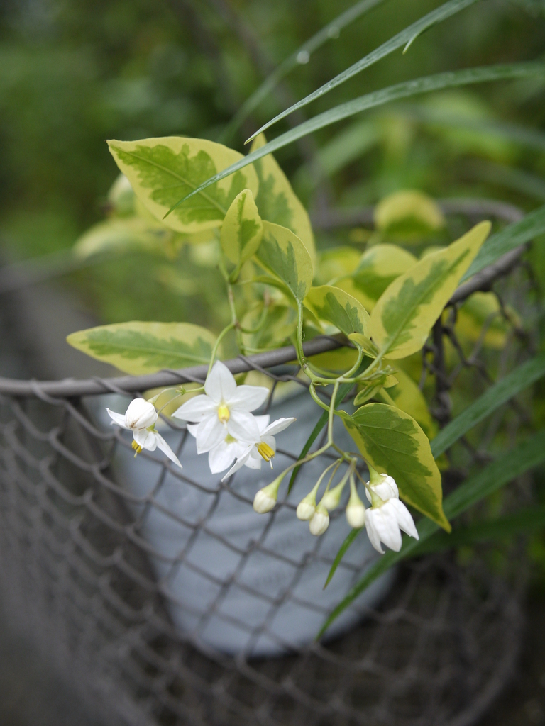 この子の名前は斑入りで白花の『ヤマホロシ』のようです。 斑入りの葉っぱが好きなんです~♪ この籠も買っちゃった~( ´艸`)