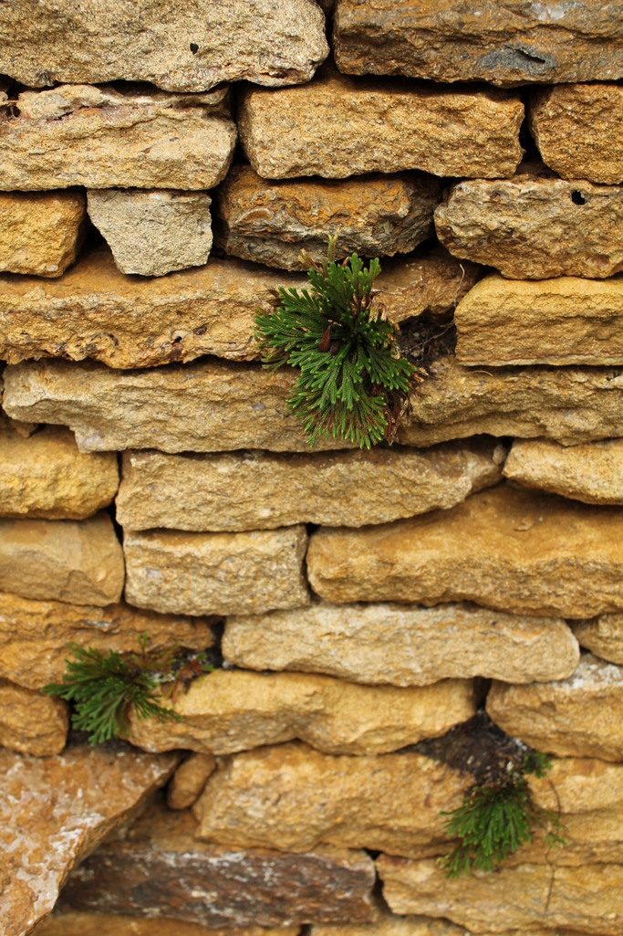 この塀が完成した時、義父が日本庭園のほうから抜いてきて、隙間に植えていました。途中枯れそうになったこともあったけど、無事根付いたようです♪