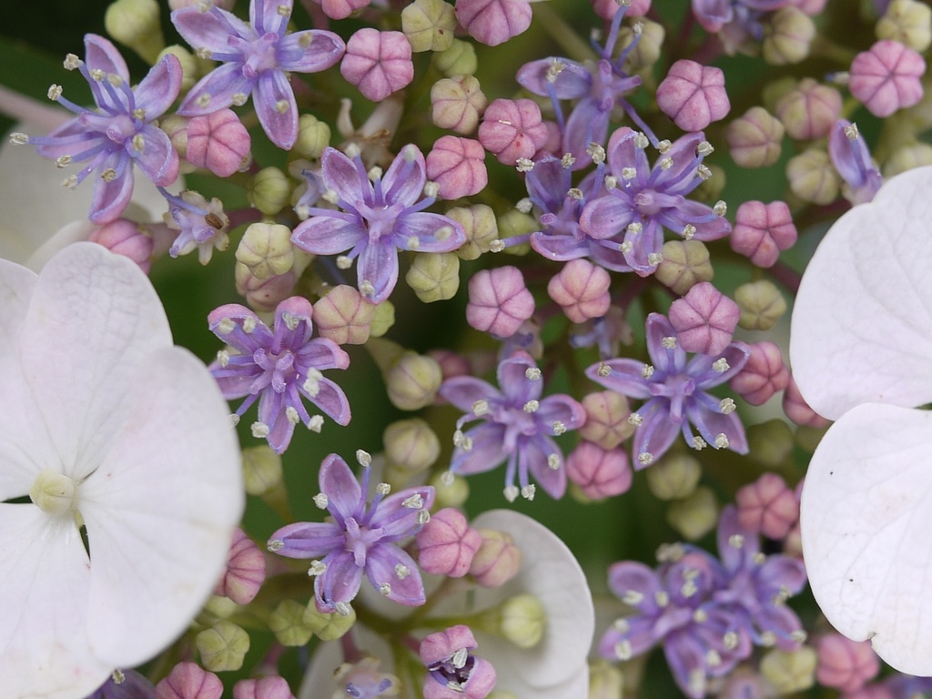モザイクの様 こんな芸術的な花だったとは、知りませんでした。家のアジサイも