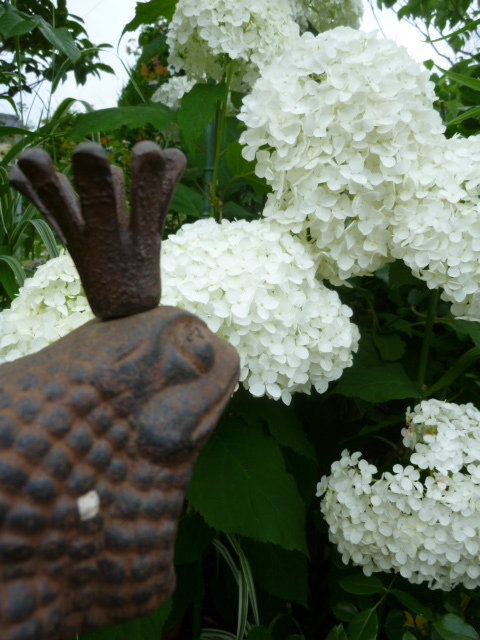 白い紫陽花、大好きです♡見事に咲いていますねo(^▽^)今度ぜひ…カエル王子の全体像が見たいです〜