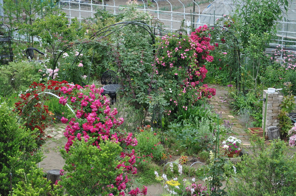 庭作りの頑張りが伝わります。ランブラ-って案外迫力出るし誘引し易いし便利ですよね。