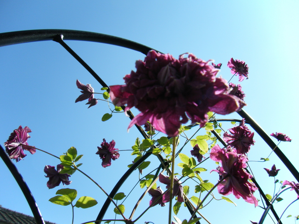 かっこいい色と花のクレマチス?ですね、是非品種が知りたいです。