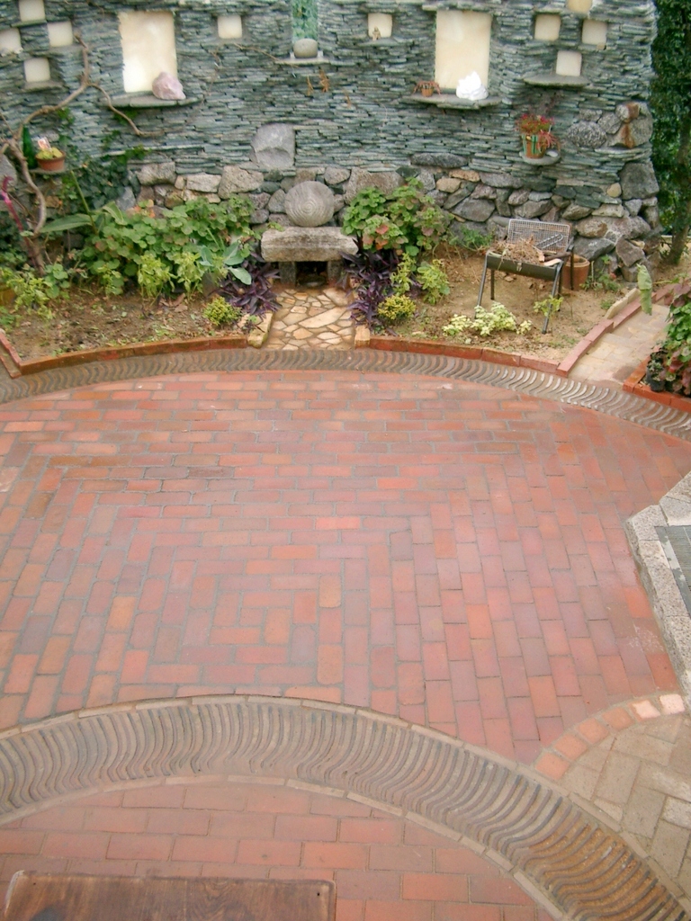 レンガ敷きと石積み