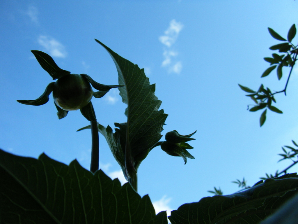 青空をバックに 面白い写真です。こういったアングルの写真、好きです。蕾が開きかけた時も面白いのでは?(^_^;)私も空をバックにと考えていましたが、雨続きの天気と良い被写体がみつかりませんでした。