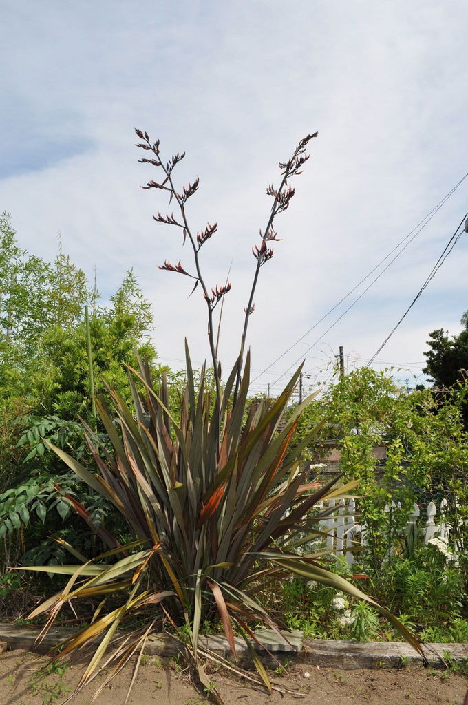銅葉のニューサイランですか?お花が咲くんですね!!!我が家はまだ一度も花が咲きません・・・植えてから何年目で咲きましたか?