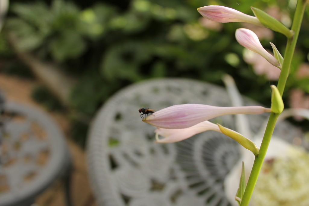 ハエ?カメラを近づけても全く動きません~何をしているのか?もしかして産卵???まさか・・・