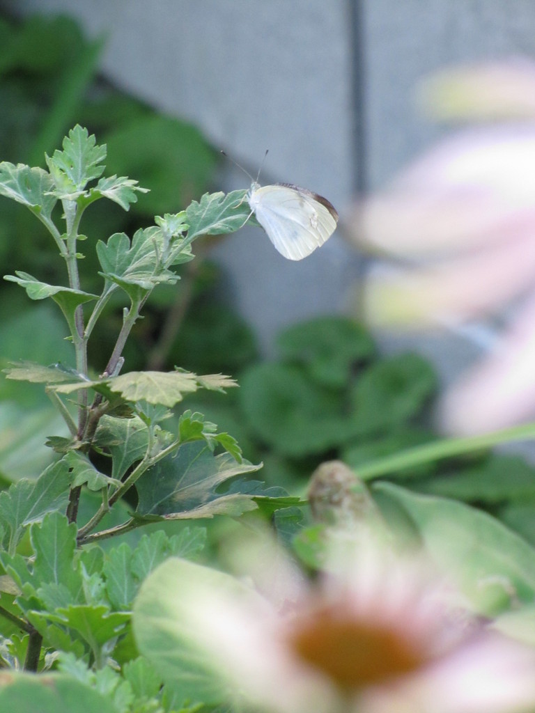 手前にぼけたエキナセアが涼しげですね。モンシロチョウもほっと一息ついていることでしょう。 いい場所みつけましたね~^^