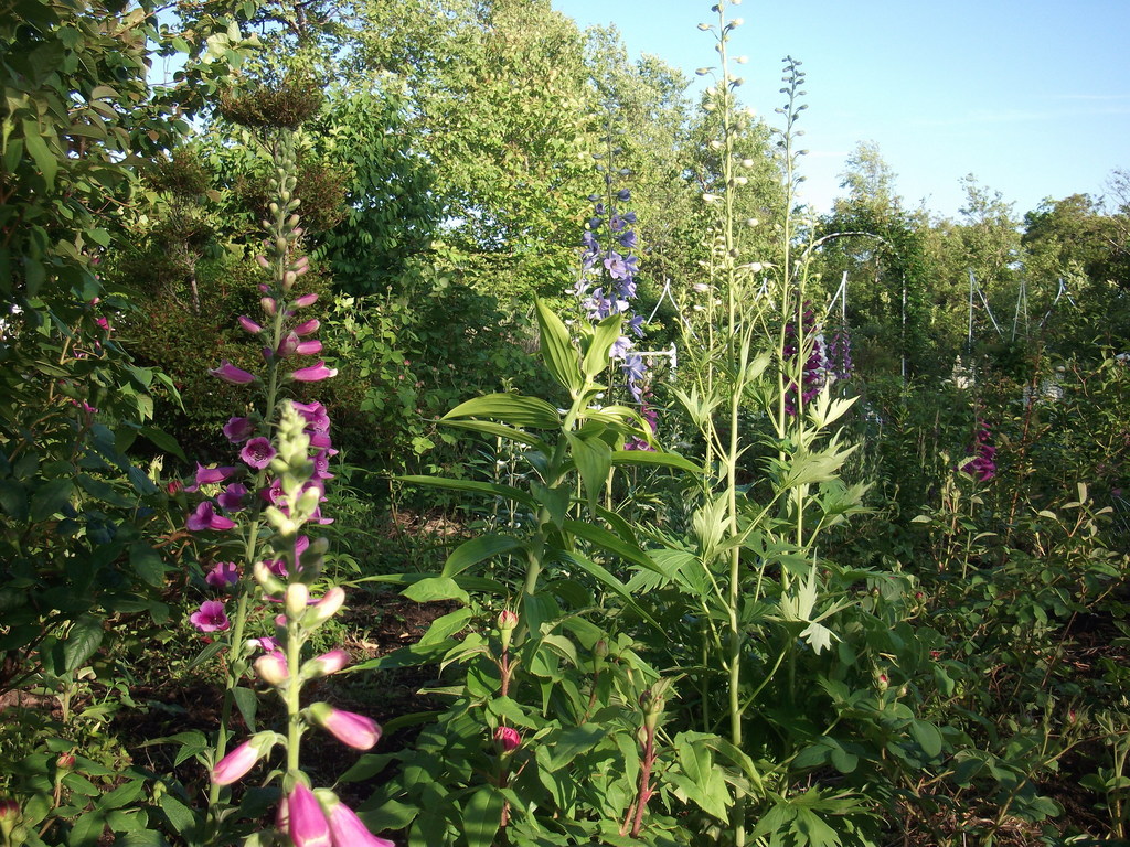 ジキタリスやデルフィニューム、後ろのほうには薔薇も有りますか?