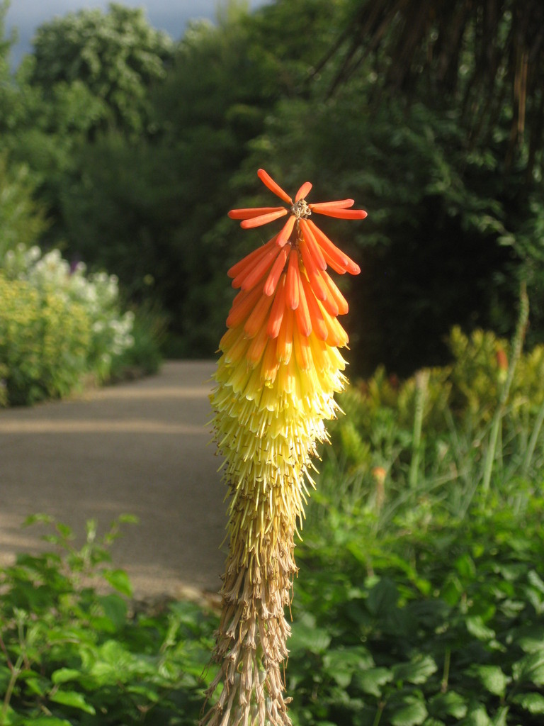 英国のイングリッシュガーデンにはわまり合わないような気もしますが、良く目立ったいました。一本の花序で、オレンジ色から黄色に変わっていくのがとても美しいです、