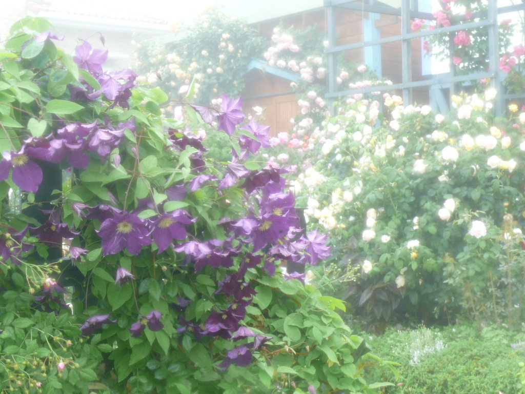 バラ,ガデニング,庭,クレマチス,