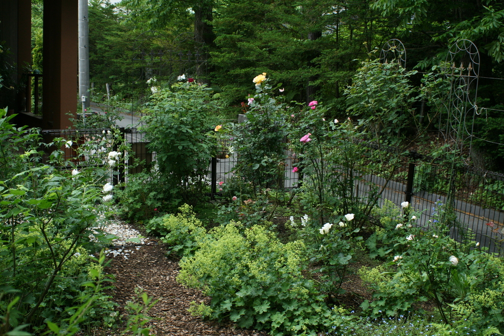 庭の奥に、バラの花びらが散っている様が好き! 素敵なお庭ですね゜☆.。.:*.