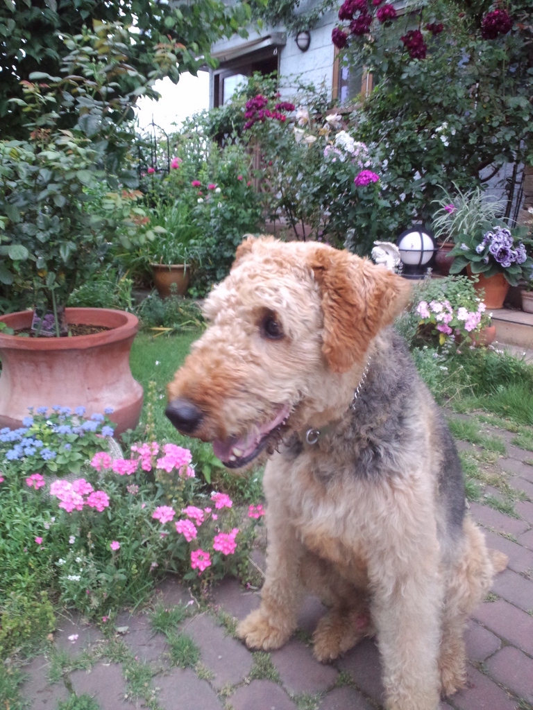 今日も可愛いですよ~♡花いっぱいのガーデンによく似合いますね!芝生がいい遊び場なんでしょうね^^