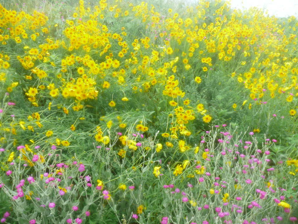 初披露!野の花コ-ナ-、去年までブタクサやススキの雑草で覆われた家の裏側をバランスよく除草し野の花の種を蒔き、自然体の花畑にしました。