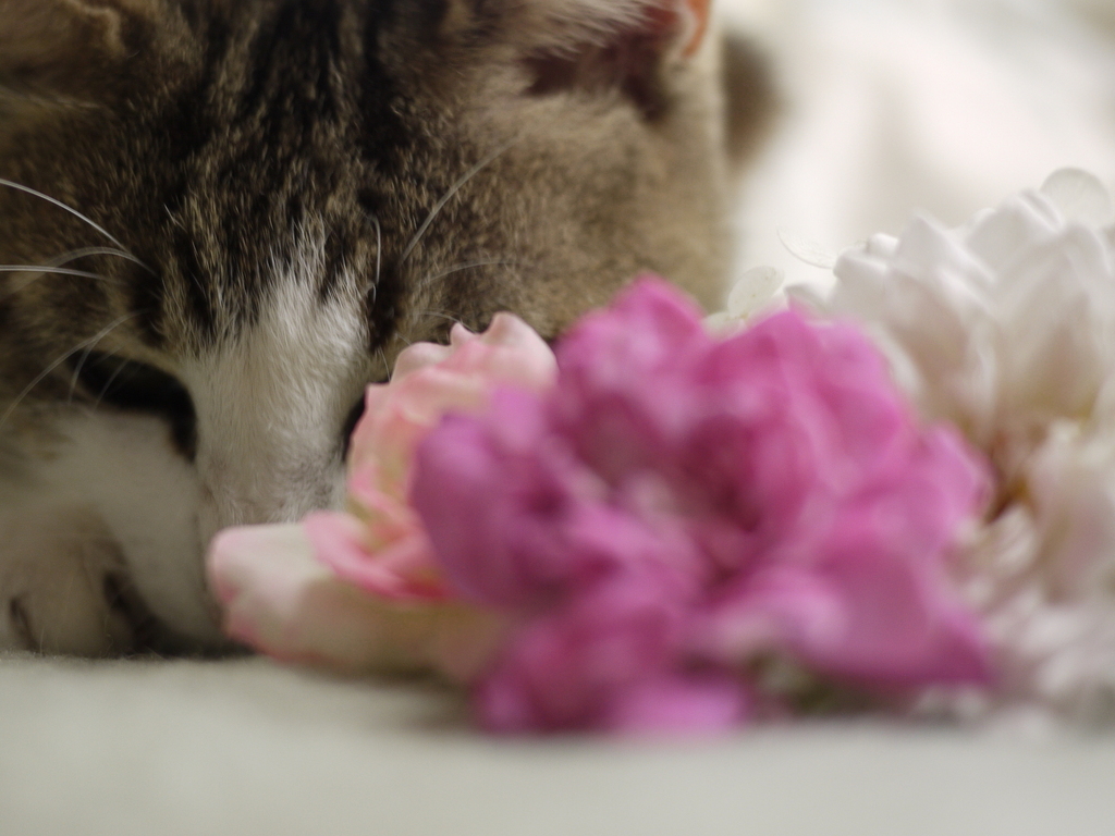 お花の影で物想いにふけっているのは、早くお外で遊びたいからなんですね♪