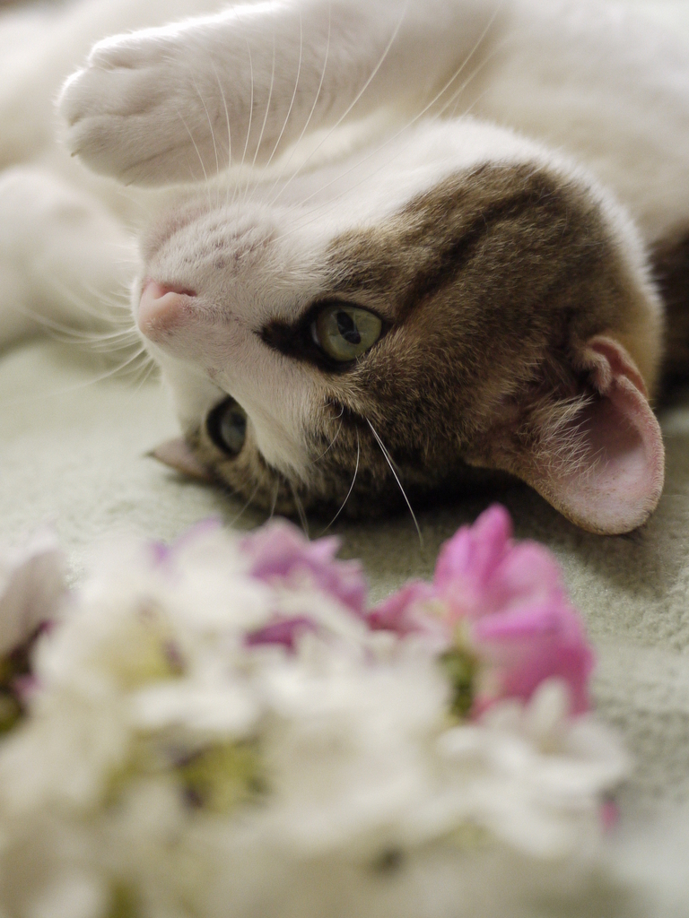 ももたん、じゃれてお花をぐちゃぐちゃにしちゃうかと思いきや意外と無視ですね(笑)ママの撮影にマイペースで応えてる所が愛らしい^^ うちのワンコには無理です(目の前に置いたら食べちゃうし・・・)