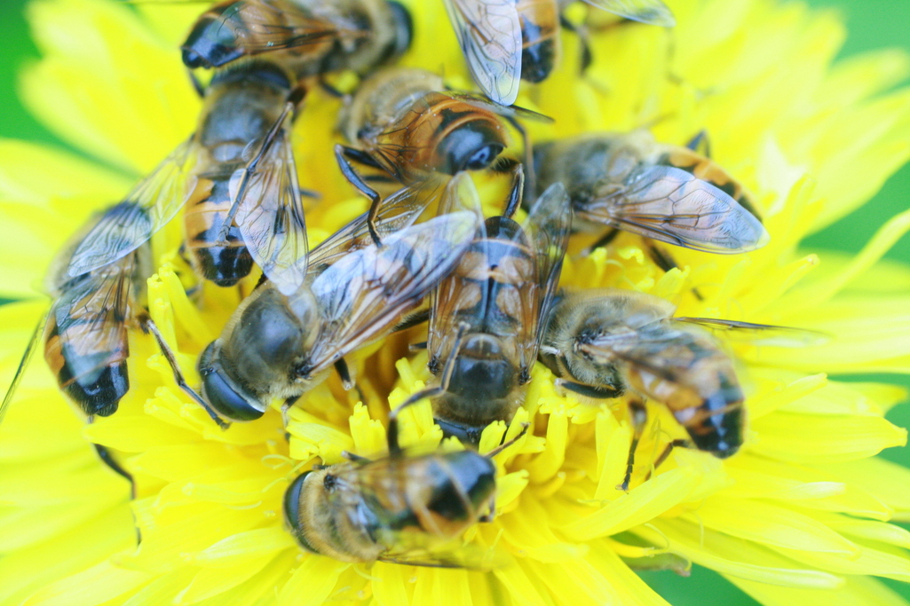 こんな風にミツバチって集まって蜜を吸うんですかぁ?!黄色がよく似合うんですね、ハチ君。