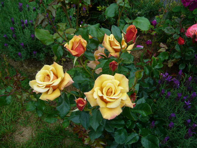 庭ふくろうさんの薔薇は、個性のある絵のようなバラが多いですネ!(芸術的センスをお持ちなんですねっ^^)ラベンダーとの色合わせが素敵です。このまま額に飾れそう~!
