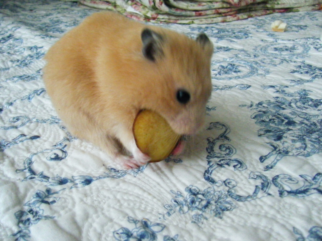 彼は必死にサツマイモを口に押し込んでいます!!ハムスターの口って、どんだけ~ってほど入ります♪