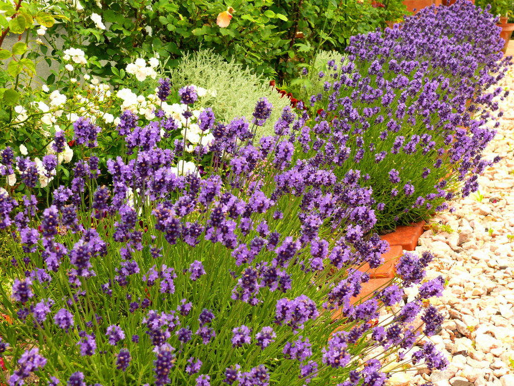 花の女王バラの下は香りの女王ラベンダ-がいろどります。