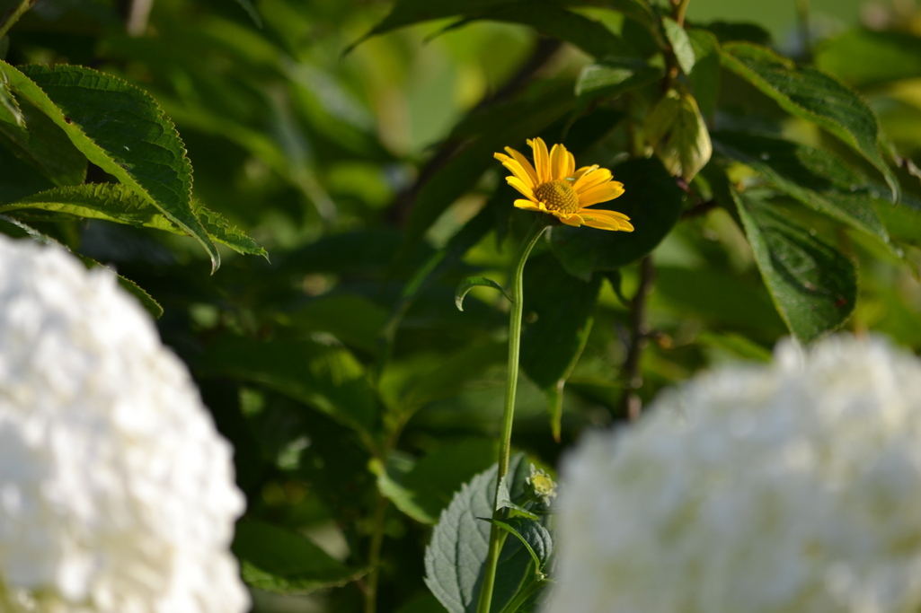 去年ご近所さんから頂いた黄色い子。今年はアナベルの間から顔を出してくれています