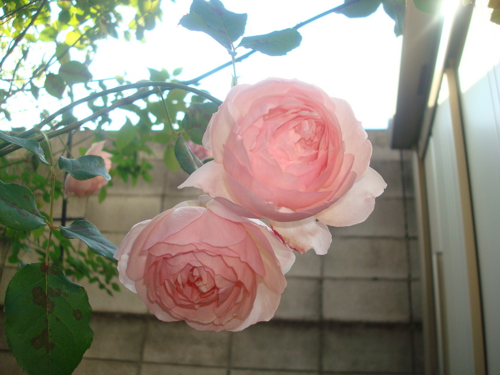 2010.12.26撮影。自宅の裏庭への通路に咲く双子のヘリテージ。まるで春を夢見るような色合いです。