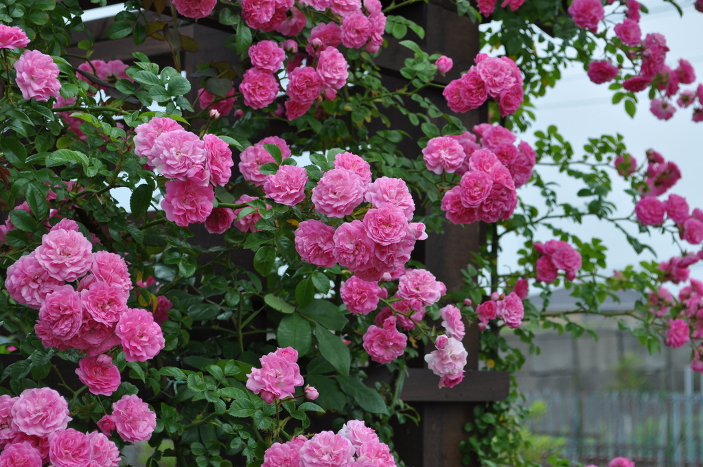 きれいに咲いてますね~!春にたくさんのバラが一気に咲くのもうれしいんですが、あっという間に終わってしまうので、ちょっと遅く咲いてくれるのがあるとうれしいですね。花付きがすごく良さそうだし、花形もとっても可愛いです。