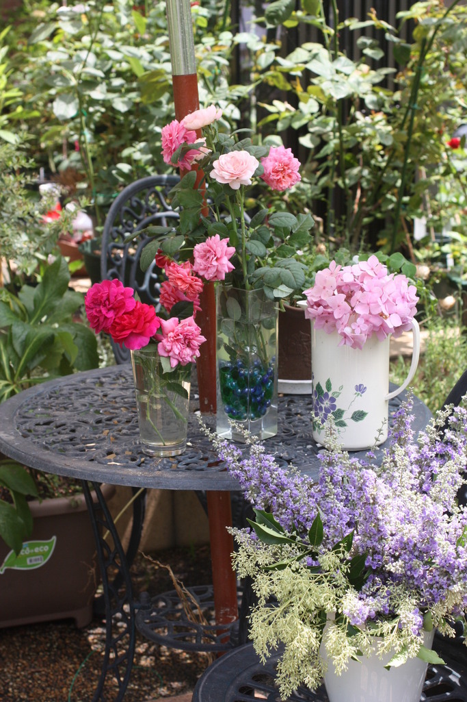 oseさんの所は梅雨の雨が続いているんですね。この辺りはすっかり真夏です。たくさんのお花達、アレンジがさわやかでいいですね^^!