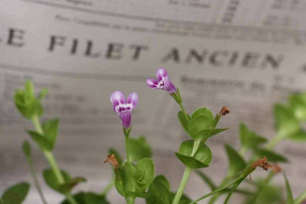 青じゃなくて残念でしたね。でも、紫の小花も可愛いです^^ バックのワックスペーパーのボケ方がお上手で、いい感じですね~♡ なんかNYの花屋さんで小花の苗を買ったらこんな風に包んでくれましたっていう雰囲気です(*^^*)