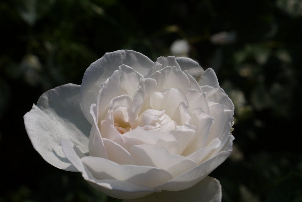 白蓮・・・豪雨の後の姿がとても綺麗でした。たわわに咲く姿も魅力的な白バラです。
