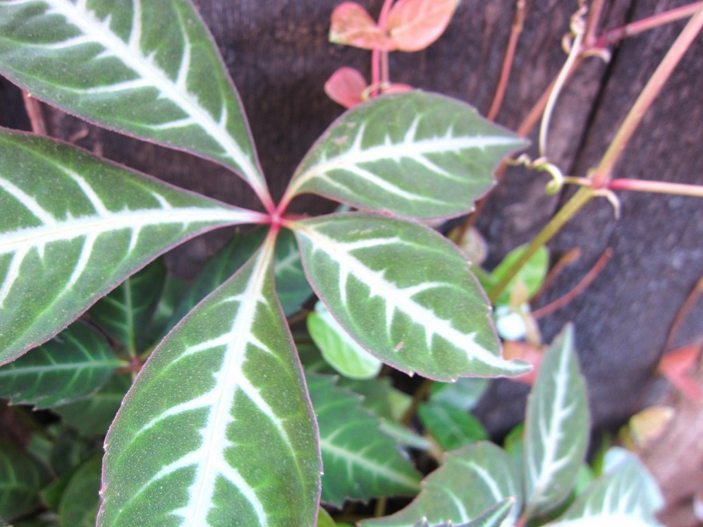 白い葉脈がくっきりと綺麗な葉です。が、繁殖力旺盛で昨年引っこ抜いたのに、またどんどん伸びてきました。