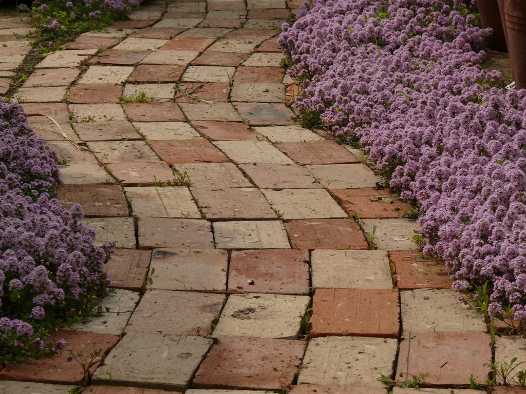 このレンガ敷きと花の取り合わせがいい。