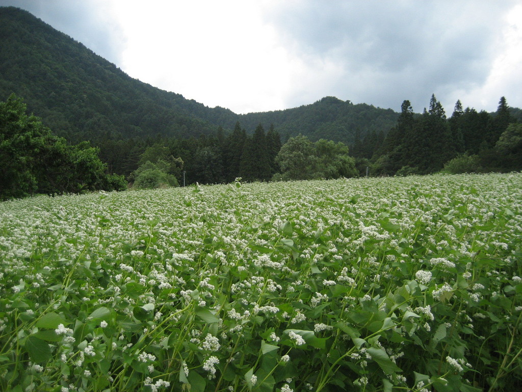 空と山と そばの花