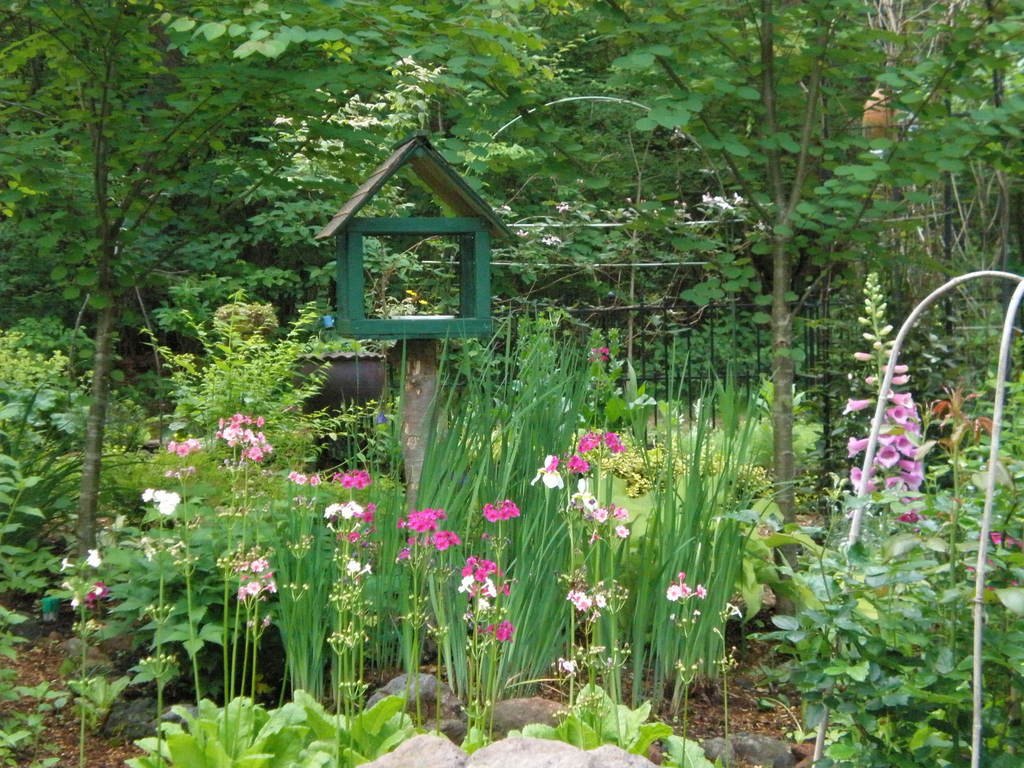 気になるものがいっぱいのお庭です。たくさんの植物がのびのびと育って、お花も綺麗です。とてもいいお庭ですね。