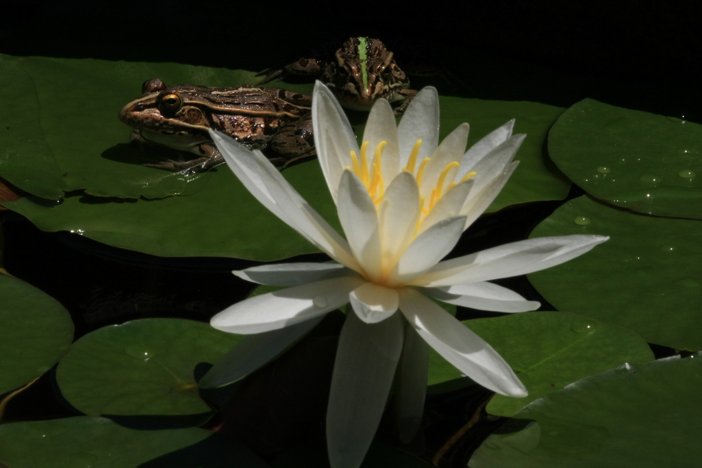 変わったかえる?ですね。緑のラインが入ってる・・・。うちにもトードがいますが、あまり姿をみせません。アマガエルもいっぱいいるんですが、鳴き声だけで姿は見えません。この子たちはなんだか、「撮るの?どーぞ」ってポーズをとっているようですね^^!