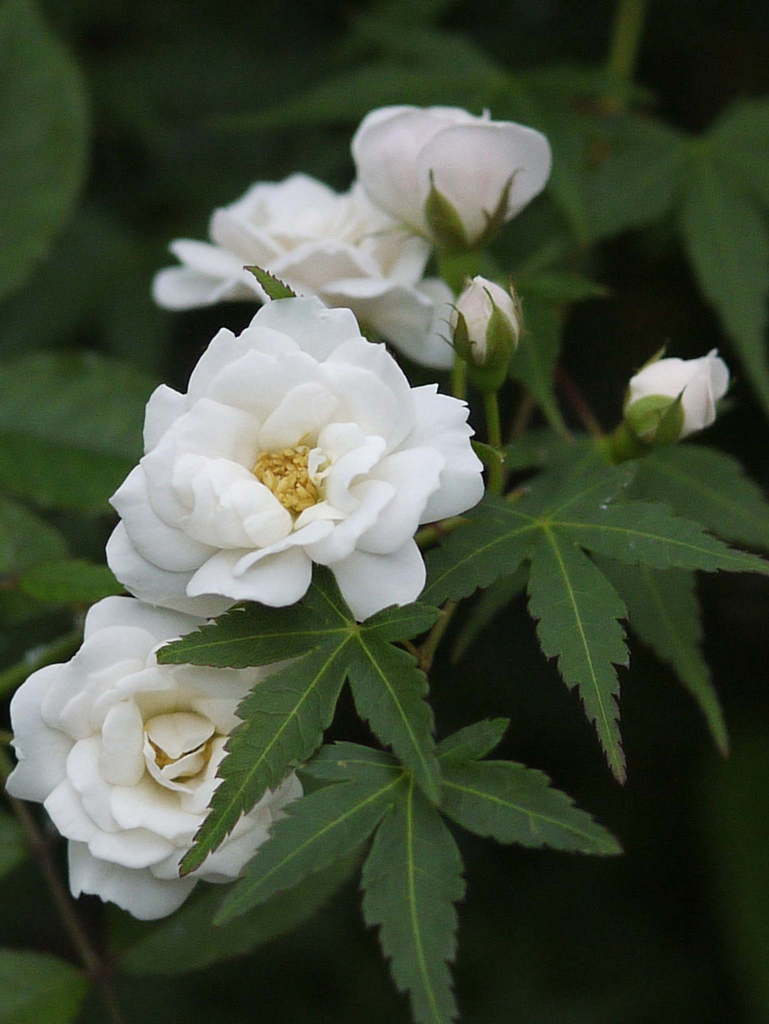バラなのに葉っぱがもみじ!おもしろいですね~。ホントに和の花のようですよ。なんだかだんだん和菓子に見えてきました・・・おいしそう、食べたい、どうしよう~。