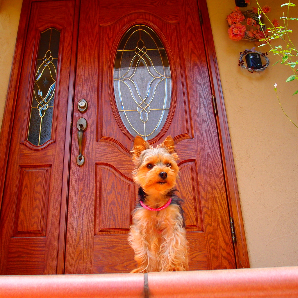 警備中、かわいい^^ ドアの色とクルリちゃん、ベストマッチですね(笑)リースもかわいくて、インターホンを押したお客さんが和みますね。