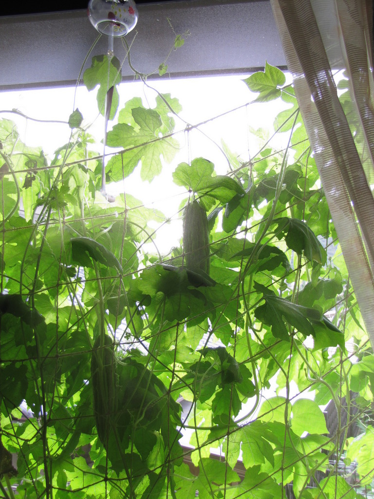 風鈴と緑のカーテン、涼しそうです~。