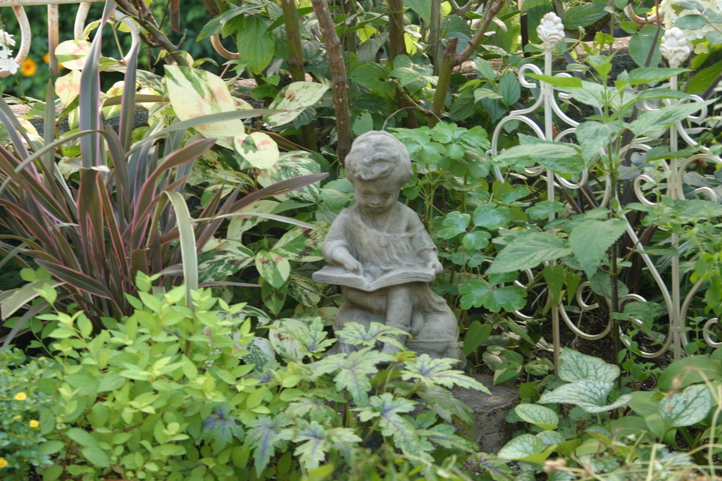 グリーンの木陰で、本を読む少女像が、しっとり落ち着いたお庭を素敵に演出してますね。