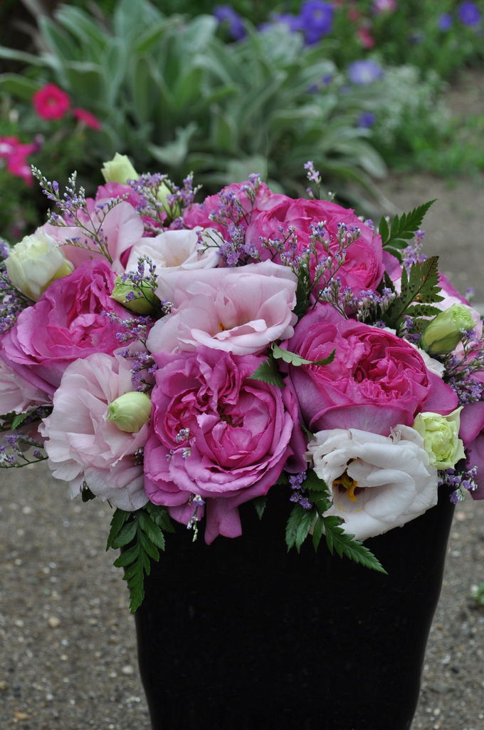 たくさん写真をとりましたね~^^ 戸外でグリーンをバックに撮ると一層素敵にみえますネ。アレンジって、人によって好みがはっきり分かれるので難しいですよね~。