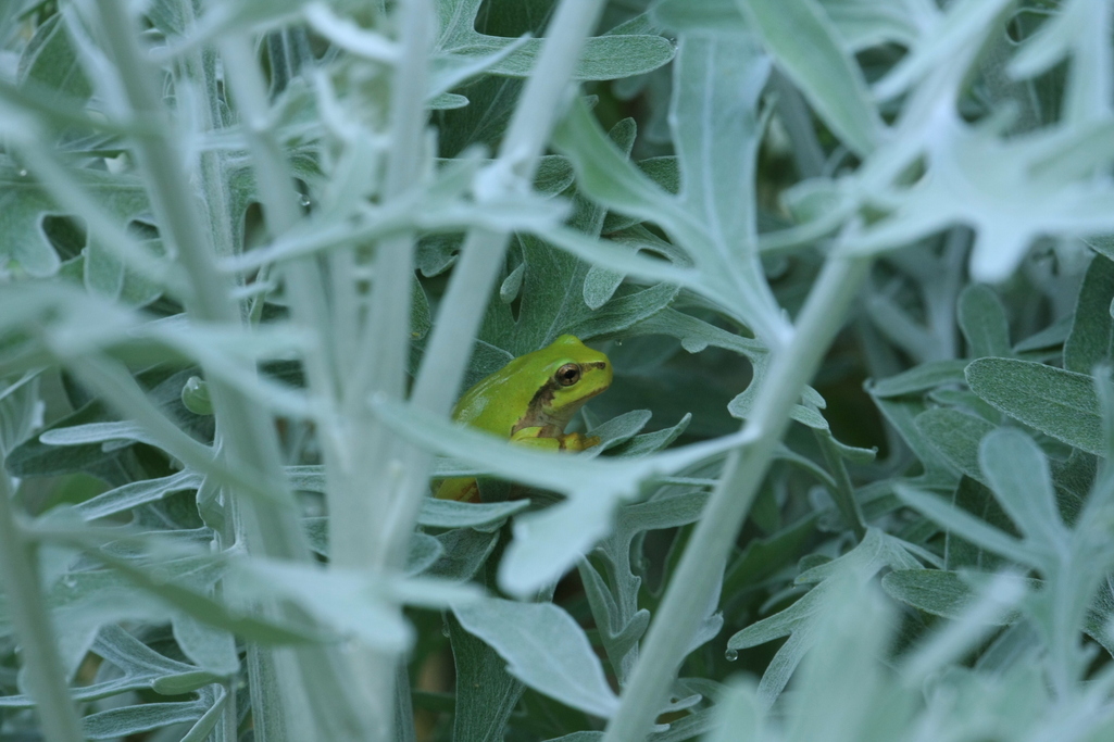かえるちゃん、可愛い❤って、うちの娘たちはいつも大興奮です。葉にうまく隠れて、可愛いですね。