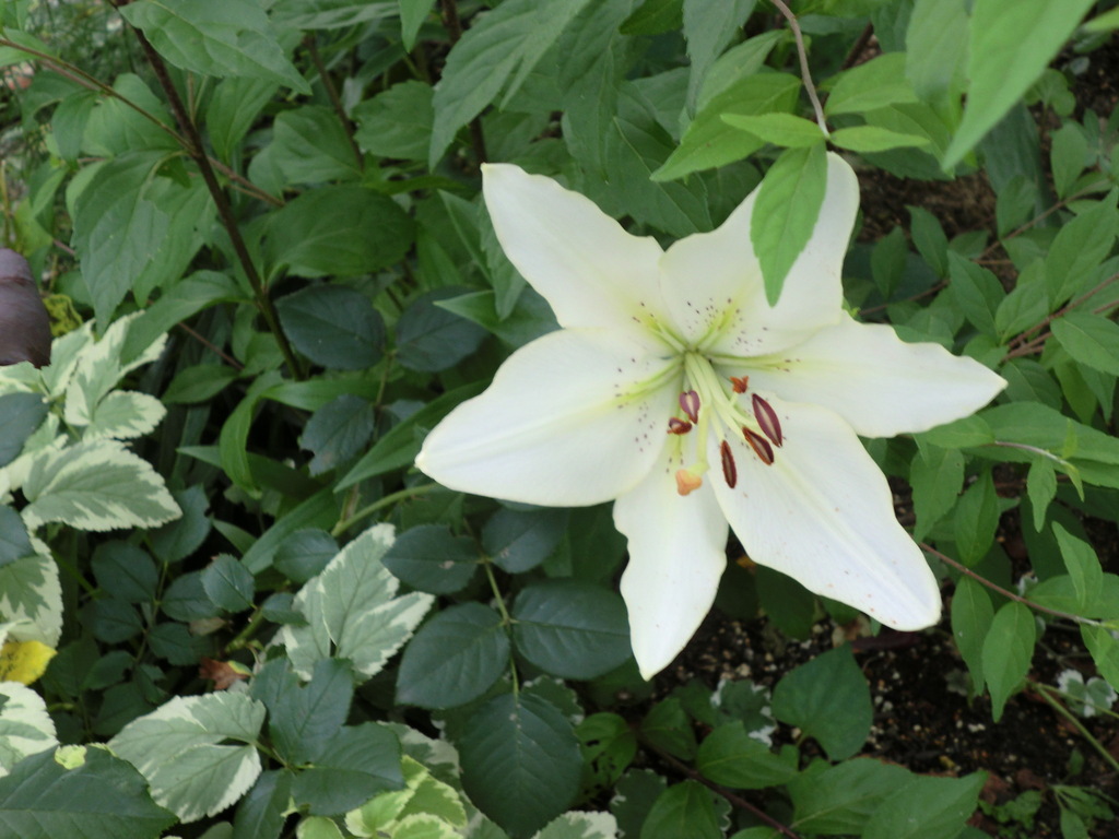 カサブランカでしょうか?清楚できれいですね。うちの庭にも同じユリが咲いています。