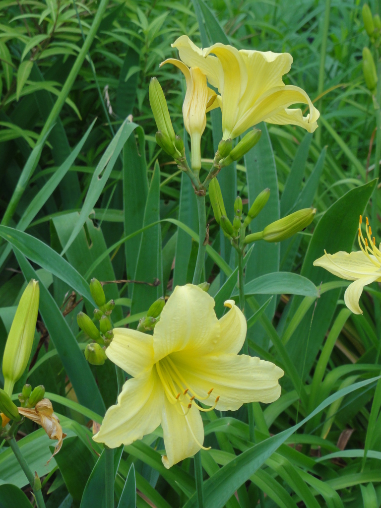 ヘメロカリス(ユウスゲかキスゲ)じゃないですか? 1日花なので、デイリリーとも呼ばれるようですけど・・。 どちらにしても、レモンイエローがとても綺麗です^^♪