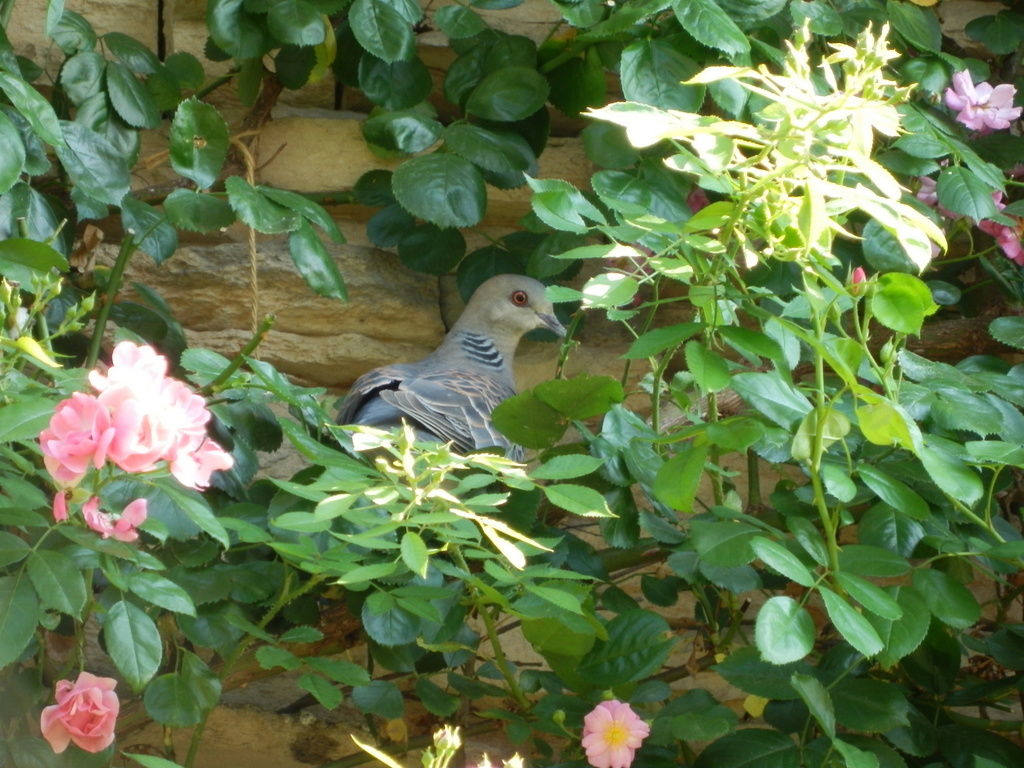 お・・・鳩、かわいそうですが追い出した方がよいかも・・・。 うちもアンジェラ横のブルーアイスに巣を作られたことがあり、バラが羽毛と白茶色の・・・だらけになりましたTTしかもヒナの羽は柔らかいのでくっついたらとれない・・・。その場所に許可かどうか、あとは心の広さ?です(笑)ちなみに私に追い出された鳩たちは、家の北側の別の木に落ち着きました^^;