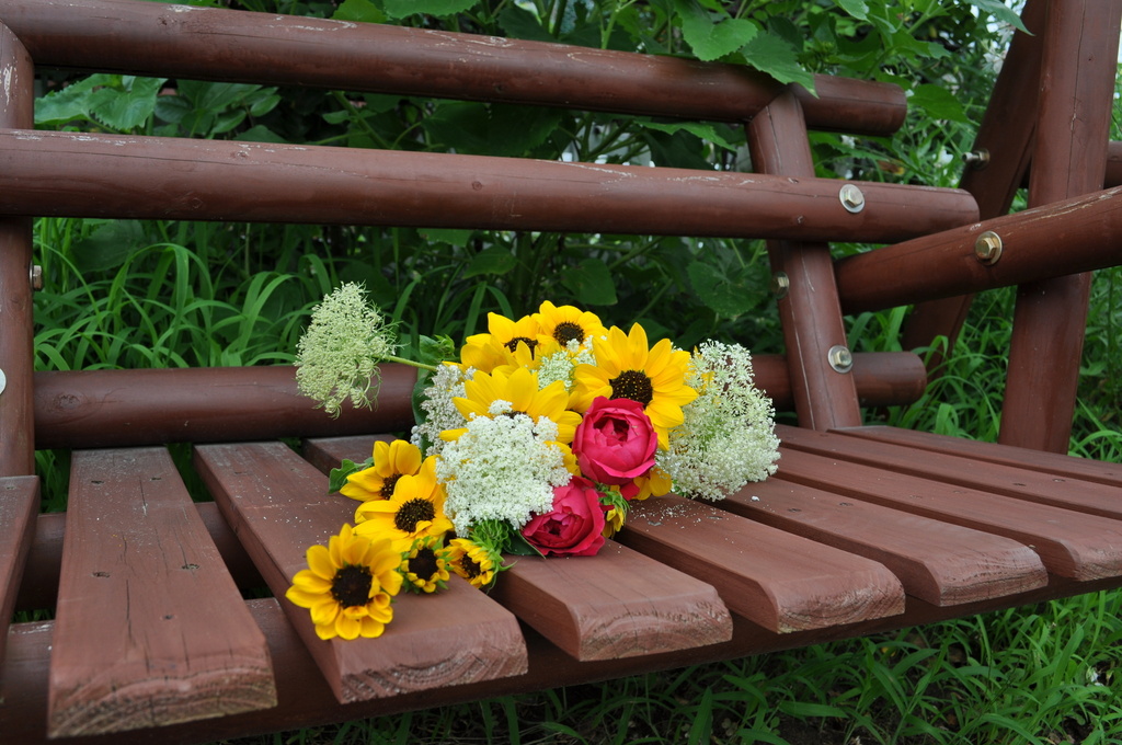 とっても夏らしい、元気が出そうなブーケですね。ブランコに置くところが素敵な写真の撮り方ですね☆