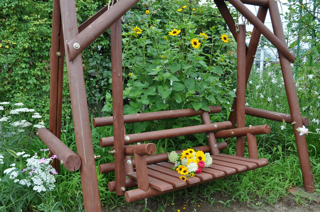 ブランコに乗ったひまわり。 「最近だれも遊んでくれないんだもーん」
