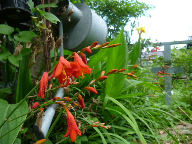 クロコスミアにカンナ! うちと一緒ですね♪ バックの如露がいい味出してます^^