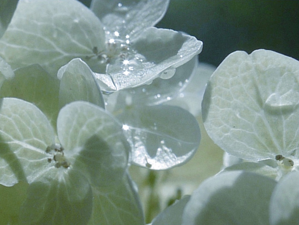 わーすごい!花びらに光る水滴がダイヤのようです。白一色もいいですね。