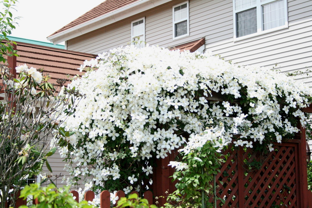 すごい花の数ですね~、素晴らしい~!とっても綺麗です!きっとご近所では、クレマチスのお家と呼ばれて、有名だと思いますよ~♡