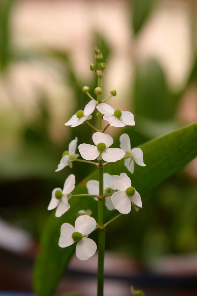 メダカを飼ってらっしゃるんですか、いいですね、水辺の生き物や植物。花びら3枚に芯がまん丸、とっても可愛い花ですね。