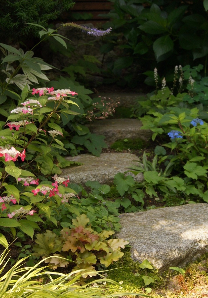 山の小道の感じ 出ています。 山好きの私は 山野草を踏まないように・・ちゃんと石段を歩きます(笑顔)